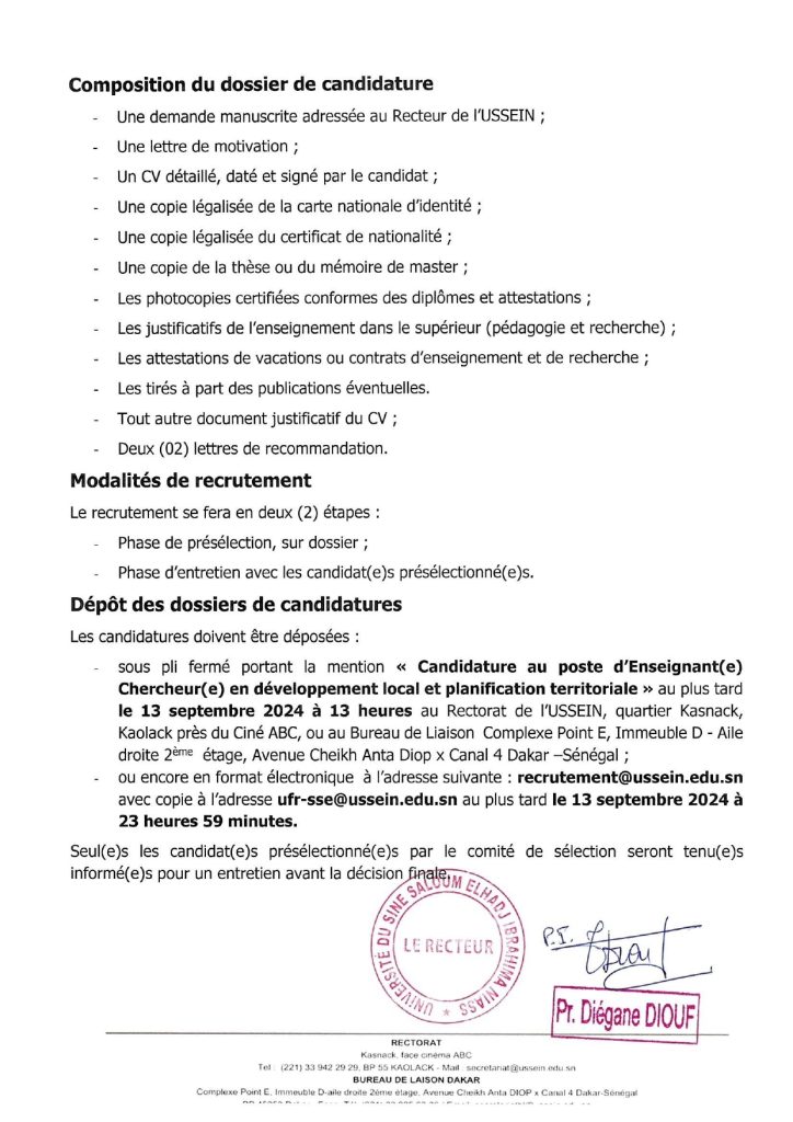 Appel à candidatures pour le recrutement d'un(e) enseignant(e) chercheur(e) en Développement local et planification territoriale