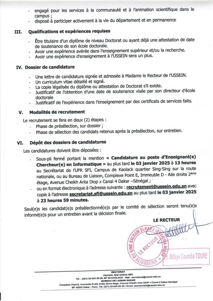Recrutement d’un(e) Enseignant(e) chercheur(e) en Informatique