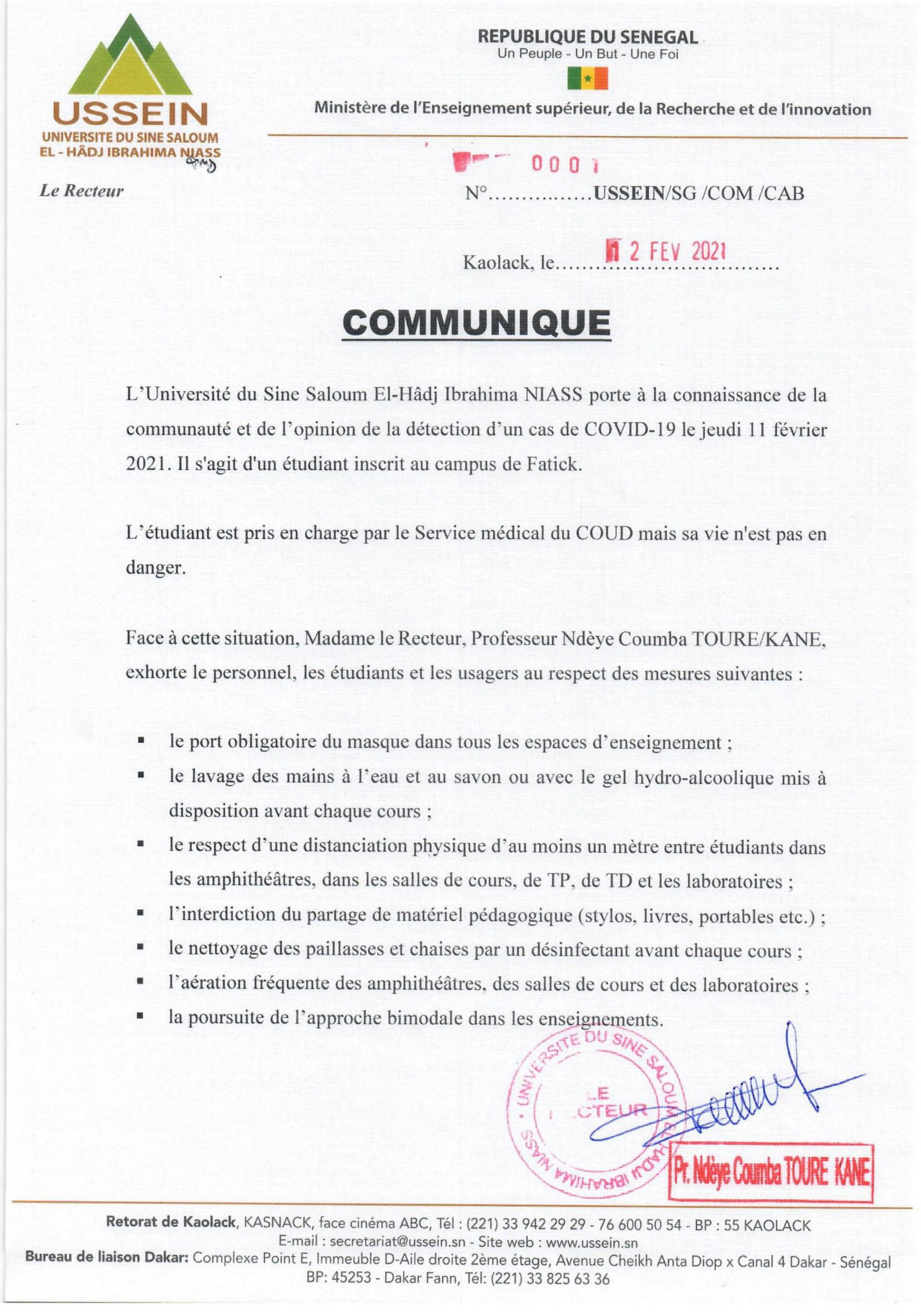 Cas de COVID-19 à l'USSEIN