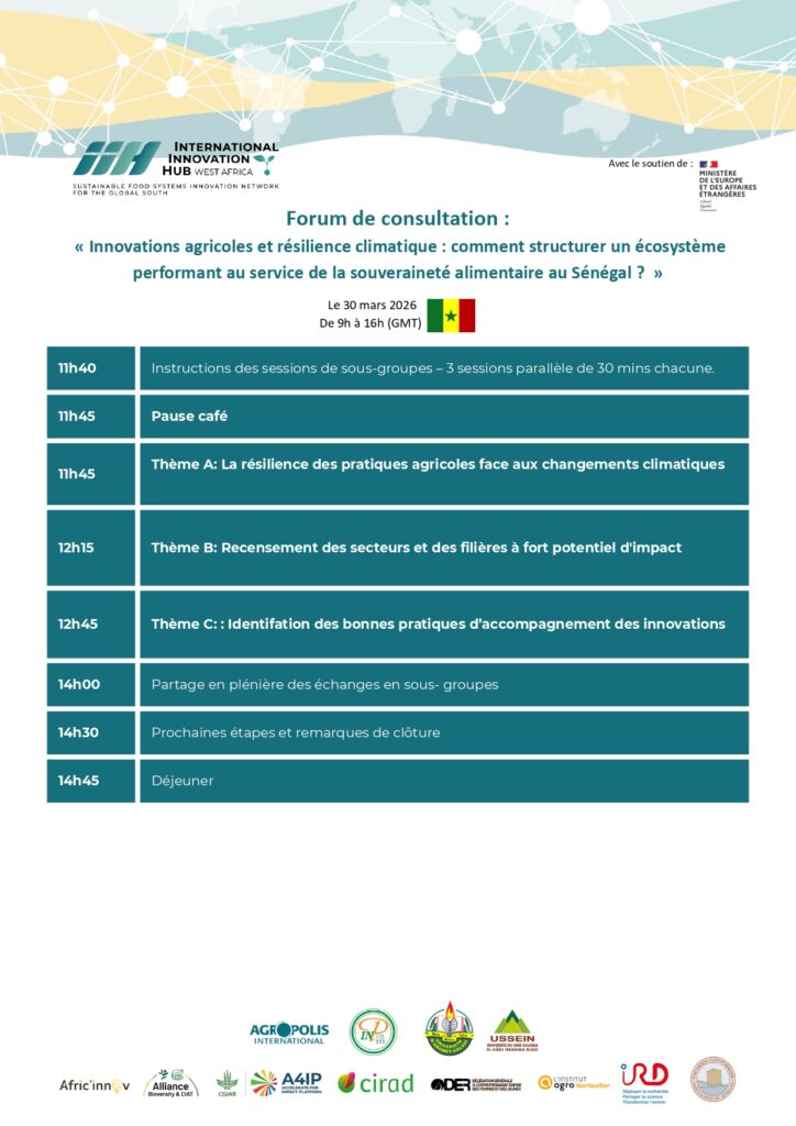 Forum de consultation : « Innovations agricoles et résilience climatique : comment structurer un écosystème performant au service de la souveraineté alimentaire au Sénégal ? »
