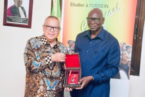 Le Recteur de l’USSEIN, le Professeur Diegane Diouf, accompagné de ses collaborateurs, a reçu la visite d’une délégation conduite par Son Excellence Ardian Wicaksono, Ambassadeur d’Indonésie au Sénégal. Cette rencontre s’inscrit dans une dynamique de renforcement des relations et de la coopération entre les deux nations.