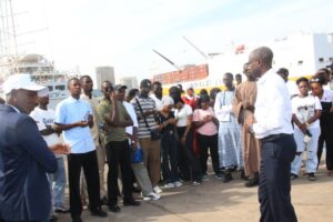 La première étape de cette mission d’apprentissage s’est déroulée au Port Autonome de Dakar, où les étudiants ont été reçus par Monsieur SARR, Officier de Port. Cette visite a permis une meilleure compréhension des opérations portuaires, de la gestion du trafic maritime, des dispositifs de sûreté, ainsi que des enjeux environnementaux liés aux activités portuaires.